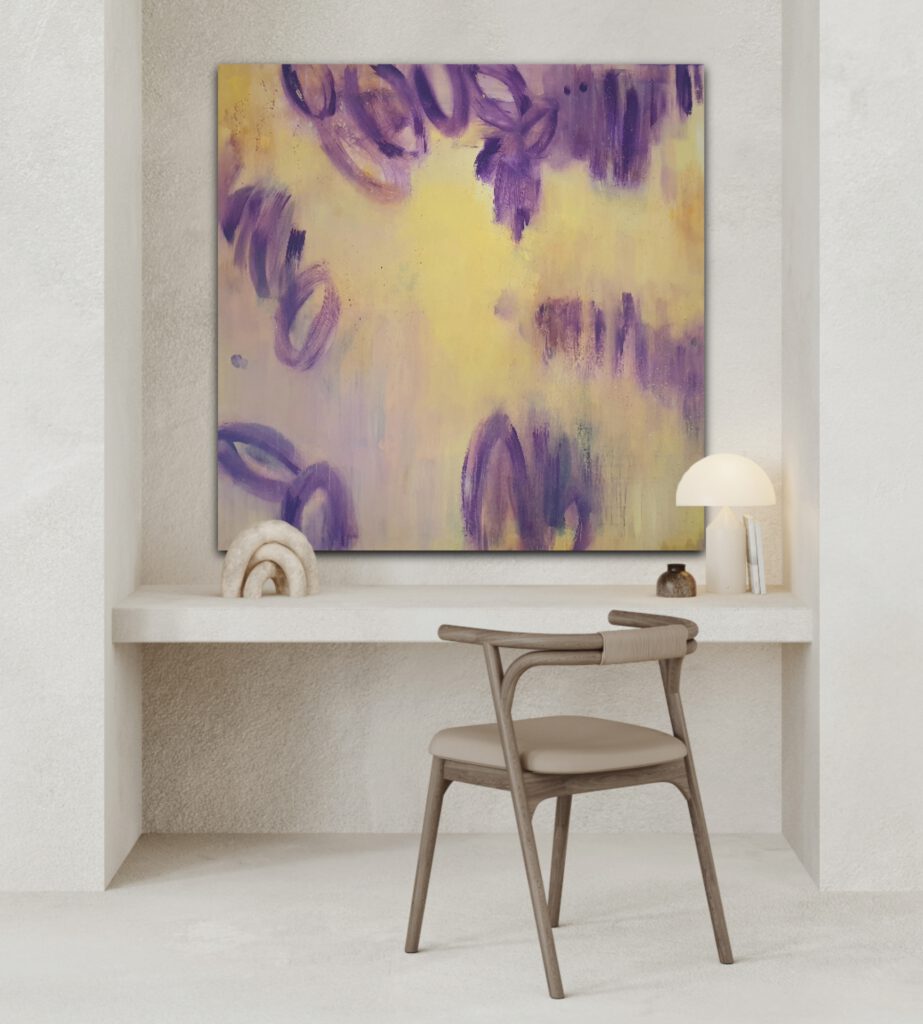 - Der Hintergrund bleibt bewusst offen – eine Einladung an deine eigene Interpretation. Zwischen den Schichten aus Lavendel und Gelb öffnet sich Raum. Raum zum Atmen, Raum zum Spüren, Raum für dich.